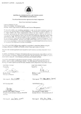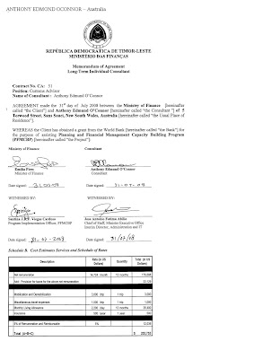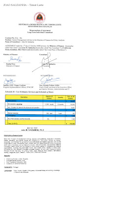 Tuir formulariu de komprimisu no pagamentus ne'ebe jornal ne'e asesu ba hatudu ministra M.B.F.Lobato, autorizadu ona iha loron 18/04/08 maibe la esplika klaru kona ba osan komitmentu $97,500.00 hodi suku fardas ba gurada prizionais Timor Leste. Aprovisionamentu desentralida mak realiza ne'e selu los ba kompainia ne'ebe la dehan sai. Prosesu halo fardamentu ba guarda Prisionais TL hahu kedan iha fulan marsu tinan 2008. Iha loron uluk fulan Marsu tinan rihun rua walu Ministra Justica simu SMS ida ne'ebe ninia konteudu fo numero konta banku. "Sra ne'ei no ac BCA saya 2551122XXX ho naran IMANSYAH BUDIANTO," nia informa.