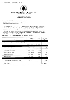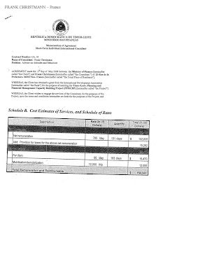 Jornal ne'e konsege hetan asesu ba CVP ida ho valor US$97,500.00 hodi halo fardamentus ho volume liu atus lima maibe la defini kompainia ne'ebe sei simu osan hirak ne'e. "Nune'e uza naran kompainia ne'e ho nove mil sete centus (US$9,700.00) depois ami selu ho pajak ninian ne'e mak sai nove mil sete centus (US$9,700.00). Ami rua hetan sepuluh persen hanesan ne'e ho deit seluk kompainia A nia pajak," dehan A ne'ebe simu osan husi A hafoin lori tiha parte 90% ba entrega iha uma ministra ninian iha Bidau.