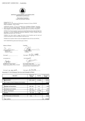 A ho B mos hahu prepara dokumentus hodi formaliza sistema tende ne'e iha meadus 2008 maske tuir SMS ministra ninia hatudu katak prosesu aranja fardamentu hahu ona iha fulan Abril 2008. "Mai ami, nain rua maka halo duni penawaran ne'e," B dehan. Maske nune'e sira rua mos kompriende didiak prosesu ne'e nia lalaok. "Depois ami nain rua sei koalia ba malu, dehan, atu halo buat ne'e, halo nusa?" Tan ba ladun kompriende entaun B buka hatene fali ba Ministra ninia kaben. "Ne'ebe, ha'u husu fali ba maun, pois parece maun sei koalia fali ho mana. Ne'e maka hateten katak (Maun Amerco, maun Amerco duni). Ne'e maka maun hateten dehan ami nain rua hetan deit sepuluh persen husi osan, orsamentu atu be tuir halo pengadaan ne'e."