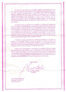 East Timor President has sent a letter to Australian Embassador in Dili Regard the issue of AusAid apealling Ausaid to review plan and keep support Peace Dividend Trust in the next three years.